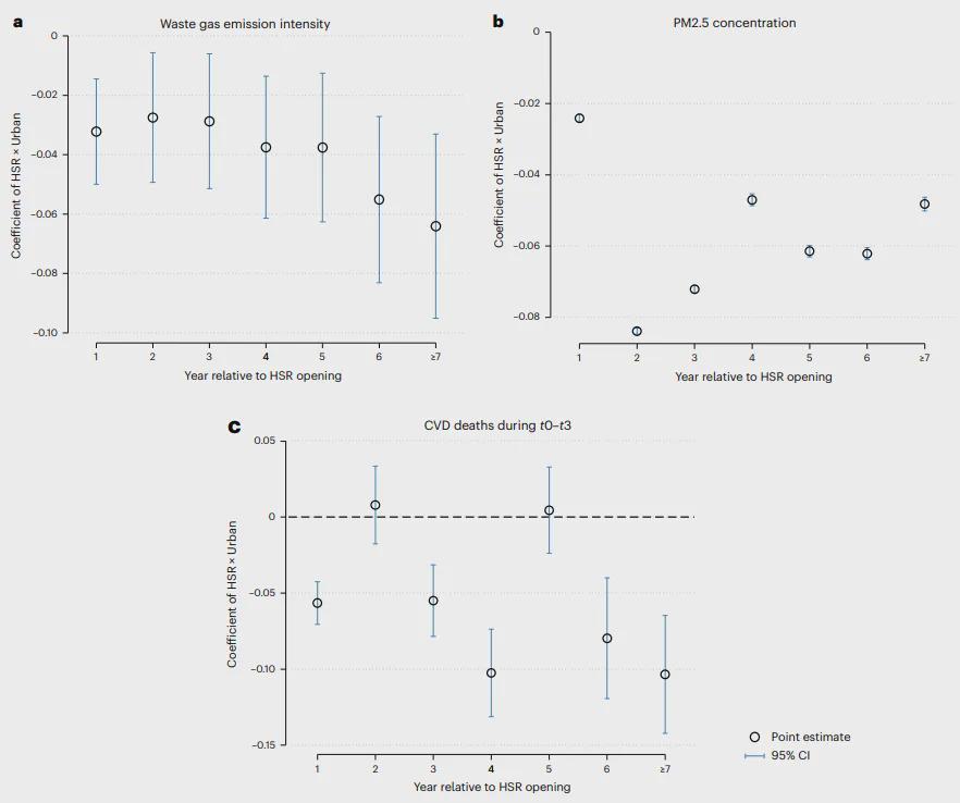 高铁开通对心血管疾病死亡率的影响也存在城乡差异。研究发现,在高铁连接后的三年内,城市地区的心血管疾病死亡率减少了3.60%,而农村地区仅减少了0.88%。这种差异随着时间的推移而加剧,显示出高铁开通对城市地区公共健康的更大益处。