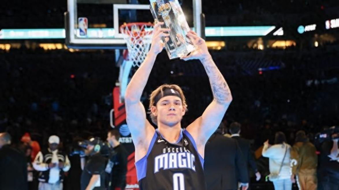 此外,由于在G联赛和私下社交媒体中,他多次上演了精彩的扣篮,所以也是得到了NBA官方的邀请,在2023年的全明星赛上,他用4次扣篮3次满分的华丽演出,成功拿到了扣篮大赛的冠军。很快,他又在2024年和2025年接连进入了扣篮大赛的舞台,先是在2024年,他在沙奎尔·奥尼尔的头上完成了飞人背扣,又在2025年以四扣满分的表现,连续拿到了扣篮大赛的冠军。