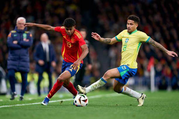 虽然没能如愿拿下胜利,但比起三天前输给哥伦比亚一战,本场主力尽出的西班牙表现要出色很多,没能赢下胜利更多是因为自身失误,巴西队的三个进球分别来自门将西蒙的直接失误、定位球和点球,而西班牙虽然也有两次点球破门,但持续施压和进攻的节奏基本贯穿了全场。本场直到第81分钟,德拉富恩特才做出全场第一次换人,罗德里、法比安、奥尔莫均打满了全场,表现最为惊艳的亚马尔也留到了全场第90分钟才被替换下场,看得出他还是希望能够在主场赢下这场强强对决,最终在基本全场占优的情况下,只是部分细节决定了成败。